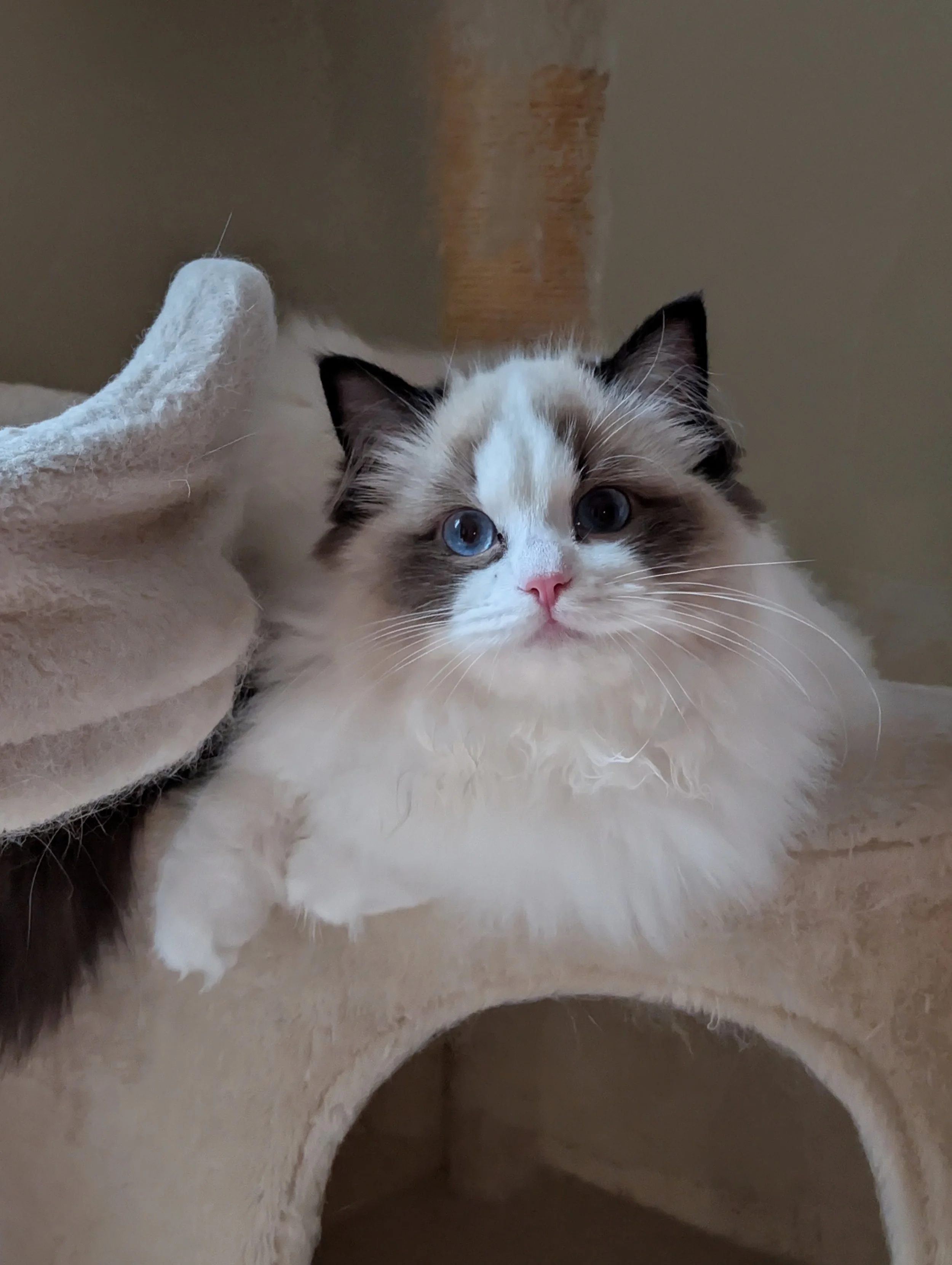 *Meet Tinker Bell, she is a beautiful seal lynx bicolor with an amazing, sweet personality and the perfect example of a lap cat. Tink is A/A blood type and PG free.